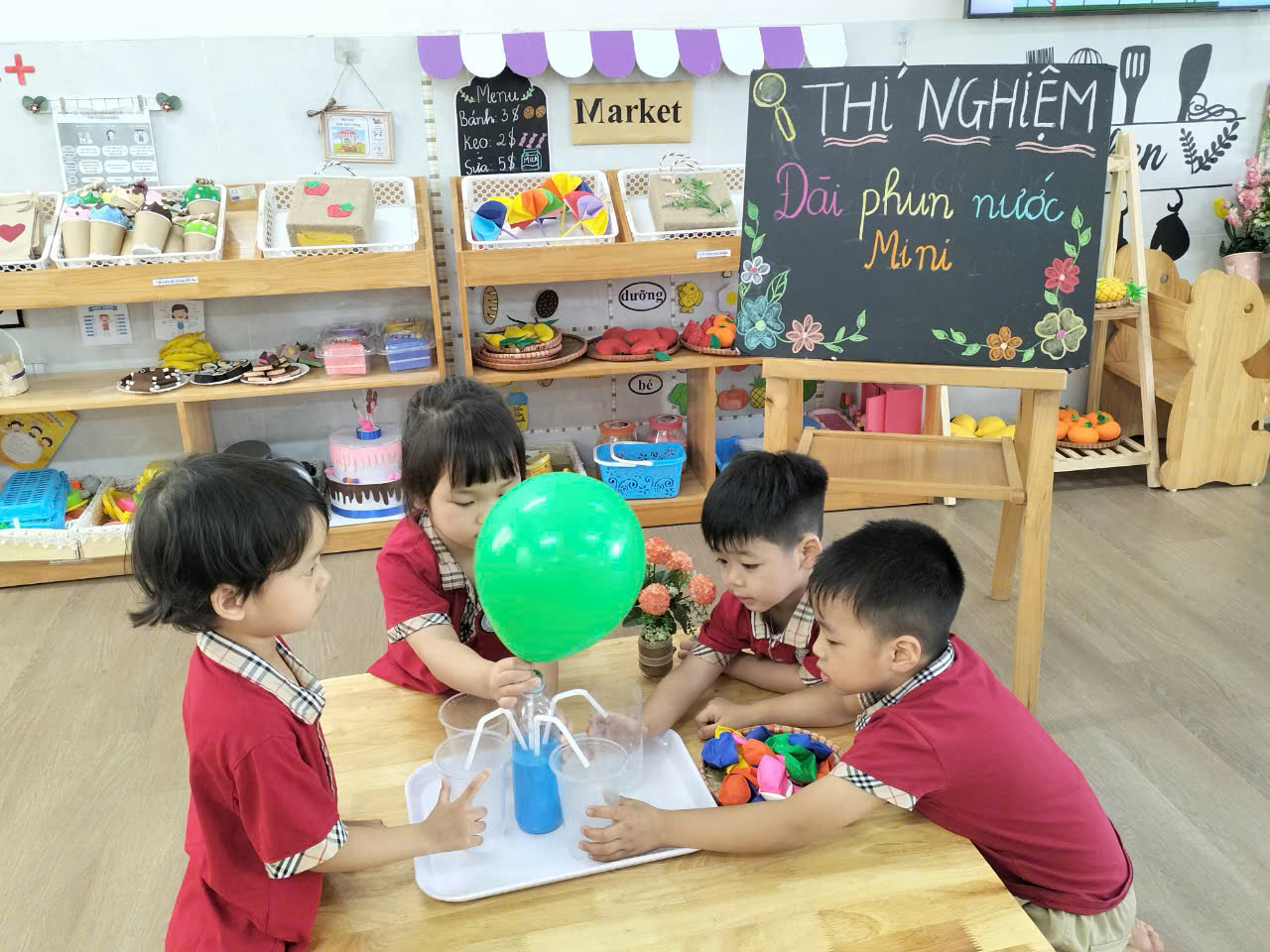 - Mời bố mẹ đến với giờ học thí nghiệm khoa học của các bạn nhỏ MGN B4 để cùng khám phá nhé! Ngày hôm nay các bạn nhỏ lớp B4 đã bắt tay làm một thí nghiệm vô cùng thú vị đó chính là thí nghiệm “Đài phun nước mini”. Mới nghe thì có vẻ như rất khó để có thể làm ra đài phun nước mini nhưng thật ra chúng rất đơn giản và dễ làm đấy ạ.