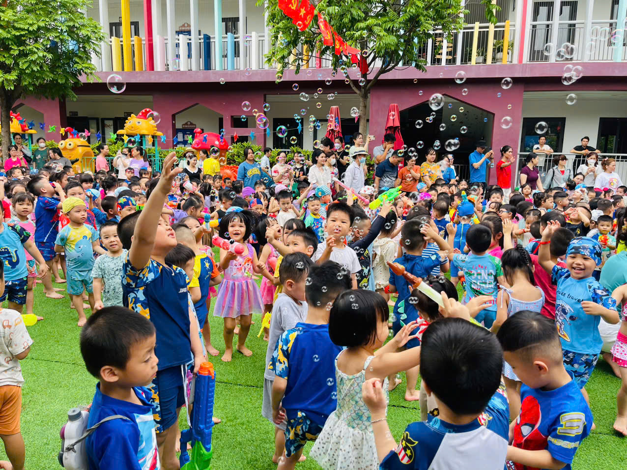Tham gia hoạt động trải nghiệm các cô giáo, phụ huynh và gần 600 các em học sinh của 4 khối lớp từ nhà trẻ đến mẫu giáo 5 tuổi của trường mầm non Hoa Anh Đào. Các con đã được trải nghiệm qua các trò chơi với nước ngay tại sân trường như : Đập bóng nước, bắt cá, chuyển nước vào chai, vớt nắp chai, câu cá, kẹp bóng bằng bụng, ném cầu nước, gánh nước qua cầu, bắn súng nước…