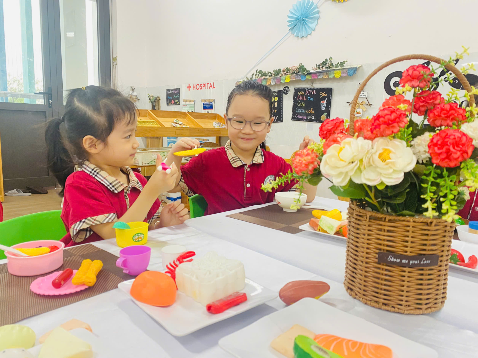 Trẻ tham gia vào các góc chơi ở lớp như: Góc bé chơi đóng vai; Góc xây dựng; Góc toán; Góc sách truyện; Góc tạo hình - âm nhạc; Góc khám phá trải nghiệm… Trẻ được tham gia các hoạt động trải nghiệm và chơi theo nhu cầu và hứng thú của trẻ. Ở mỗi góc chơi trẻ đều được học những kiến thức, kỹ năng khác nhau và quan trọng hơn cả là trẻ có cơ hội được thể hiện mình và biết phối hợp cùng các bạn tham gia các hoạt động.