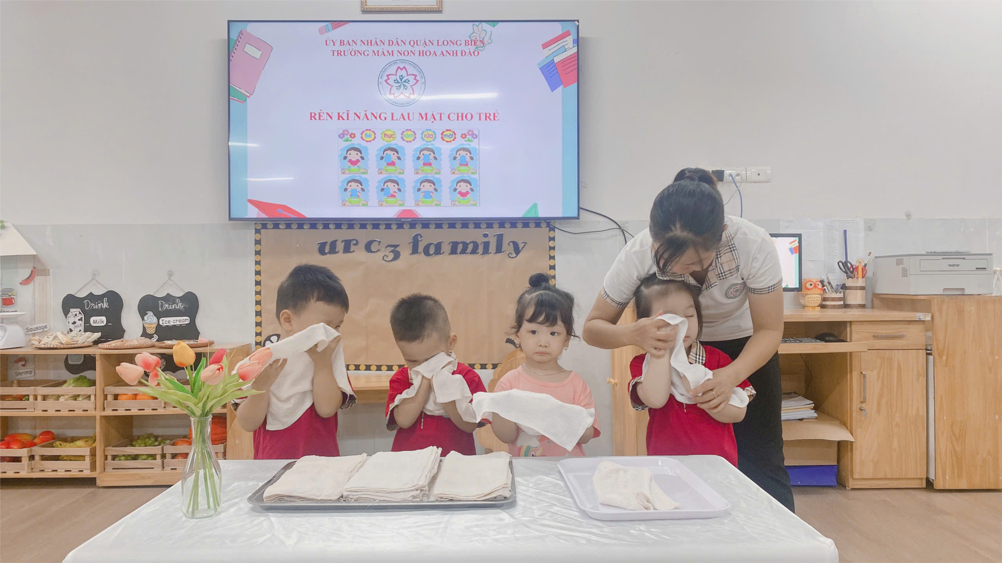 🌸 Các bậc phụ huynh cùng cô nhắc nhở con để bé có thói quen rửa mặt khi bẩn, lúc ngủ dậy, khi đi chơi về, sau bữa ăn… cho mặt luôn xinh xắn, sạch sẽ, được các bạn và mọi người yêu quý nhé.