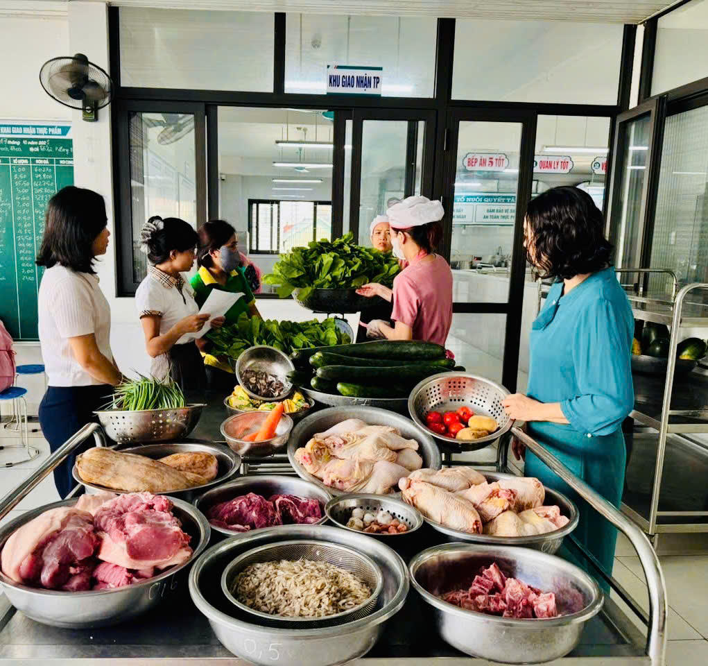 Trong buổi giám sát, phụ huynh đã được trực tiếp quan sát toàn bộ quy trình: giao nhận thực phẩm, kiểm tra chất lượng đầu vào, sơ chế, chế biến bữa ăn cho trẻ.