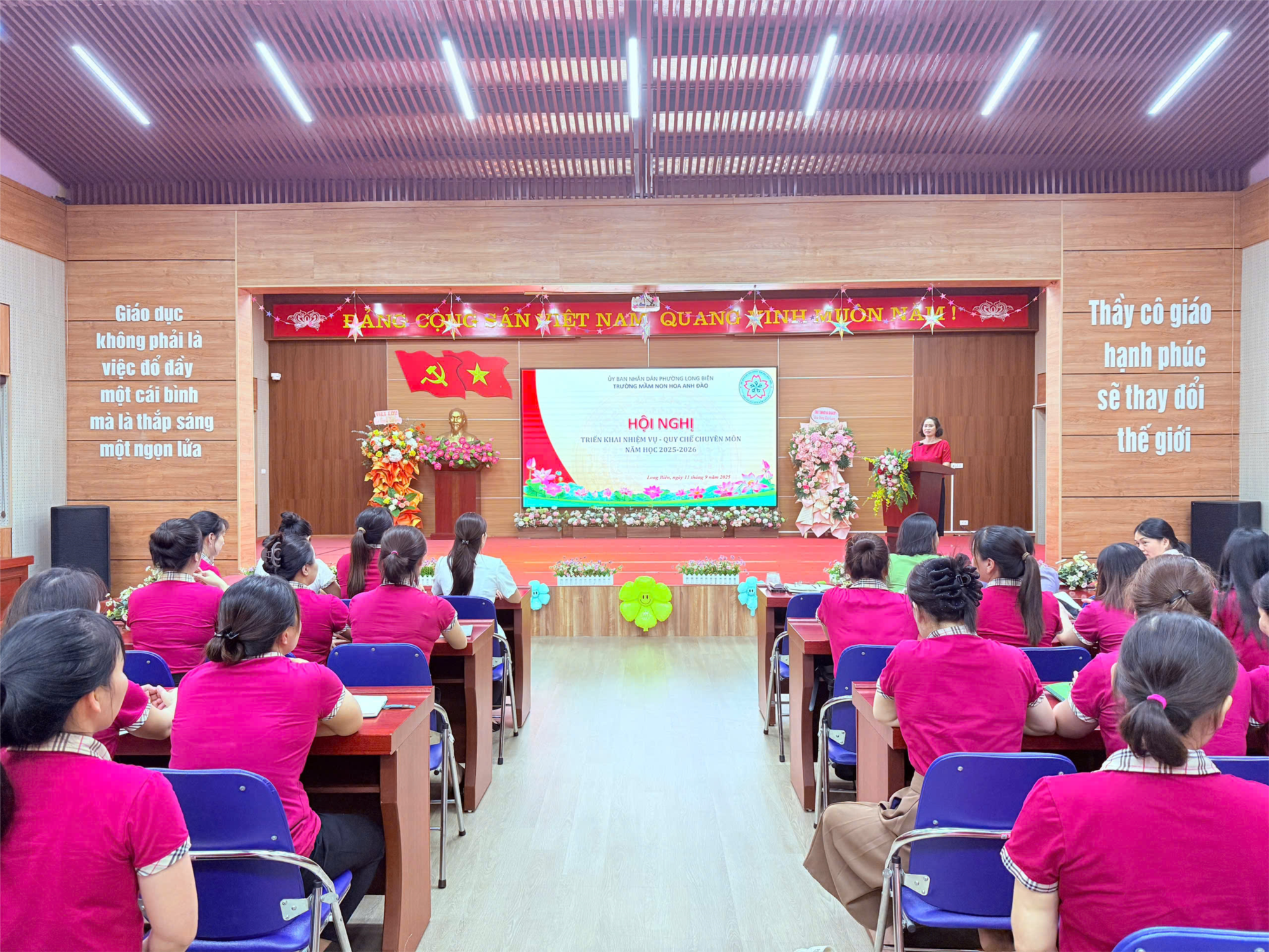 ☘️Tại hội nghị, đồng chí Hiệu trưởng đã báo cáo khái quát những kết quả nổi bật trong năm học vừa qua, quán triệt các văn bản chỉ đạo của ngành và nhấn mạnh các phương hướng, mục tiêu trọng tâm cho năm học mới với chủ đề năm học: “Kỷ cương - Sáng tạo - Đột phá - Phát triển”. Đặc biệt là tiếp tục nâng cao chất lượng nuôi dưỡng, chăm sóc, giáo dục trẻ, đổi mới hình thức tổ chức các hoạt động, tăng cường ứng dụng công nghệ thông tin và chuyển đổi số trong công tác quản lý và giảng dạy, đẩy mạnh công tác phối hợp giữa nhà trường – gia đình – cộng đồng.