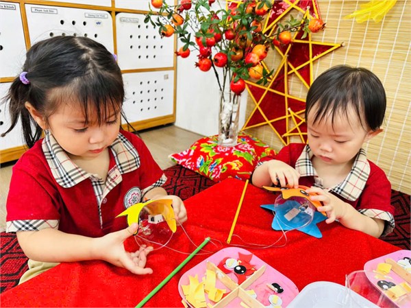 Tập ảnh : Các bé lớp D1 làm đèn lồng ngôi sao