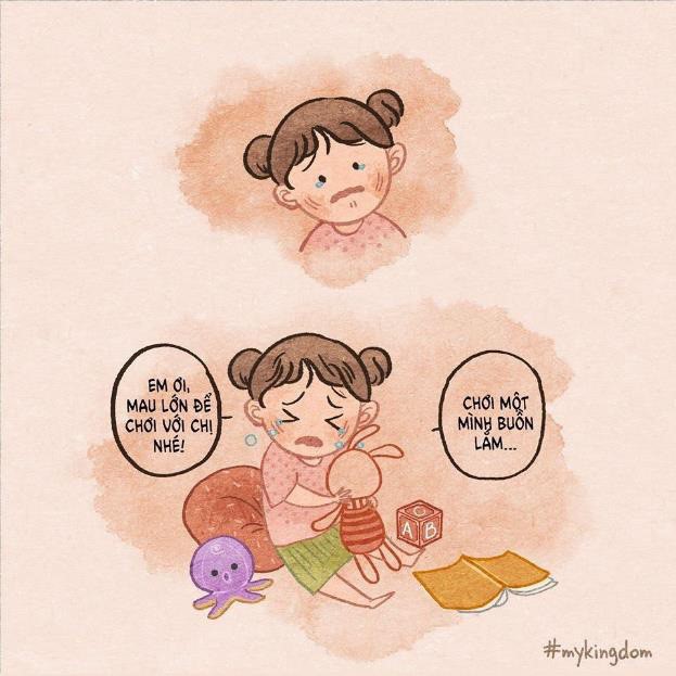Bé gái trong bộ tranh đâu phải đại diện tâm tư của một mà hàng ngàn đứa trẻ khác. Ba mẹ đâu từng hiểu con mình hay họ vô tình quên đi những giá trị tinh thần có ý nghĩa thế nào đối với một đứa trẻ. Sự cô đơn đến người lớn còn khó có thể vượt qua vậy nhưng những đứa trẻ chưa biết gì lại phải hằng ngày đối mặt. Chúng cần ba mẹ hơn tất thảy mọi thứ, sự quan tâm, sự yêu thương sẽ bù lấp đi tất cả.