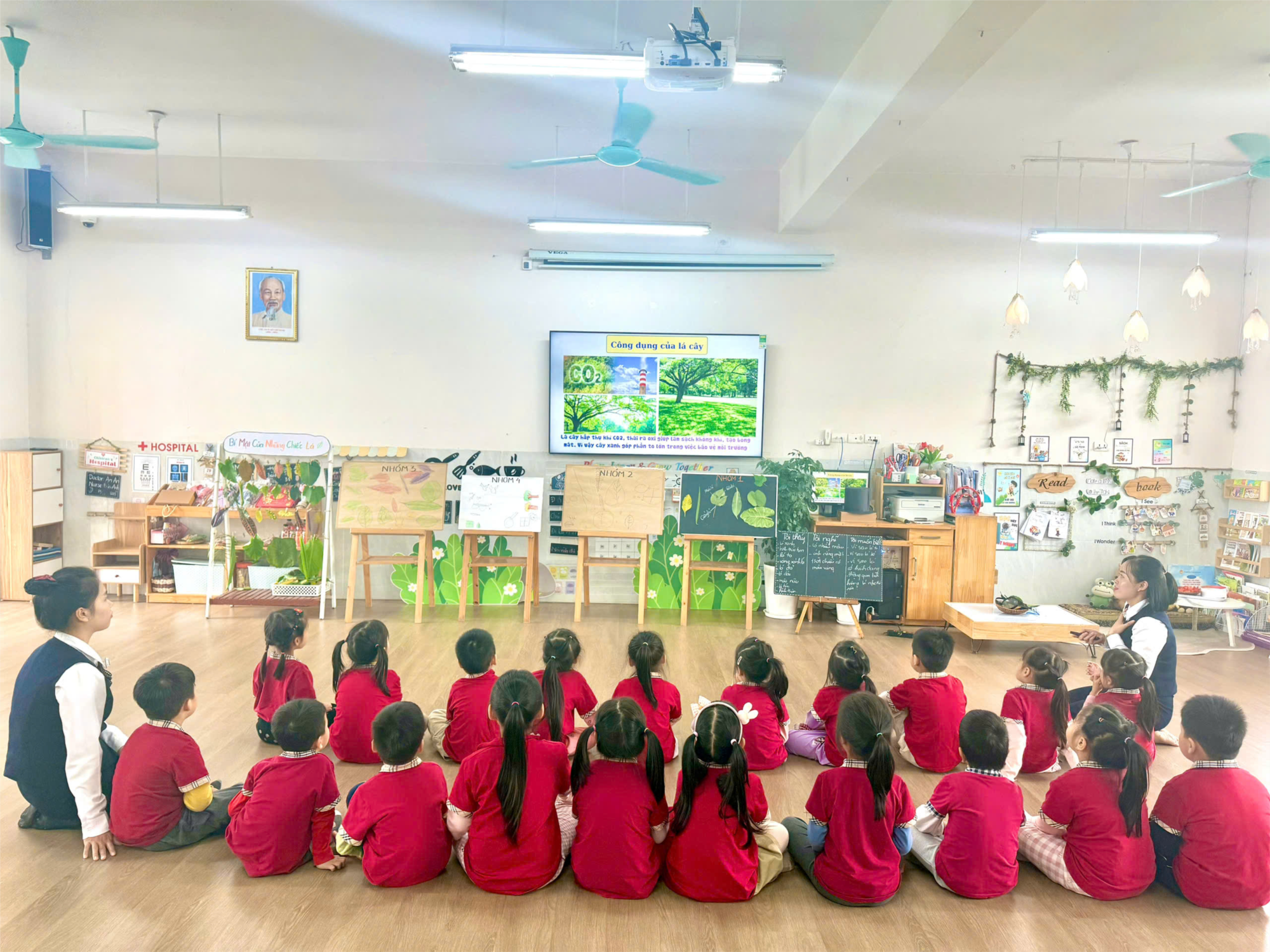 Tiết học của các bạn lớp MGL A1, lĩnh vực “Khám phá khoa học” với đề tài “Khám phá về lá cây”.