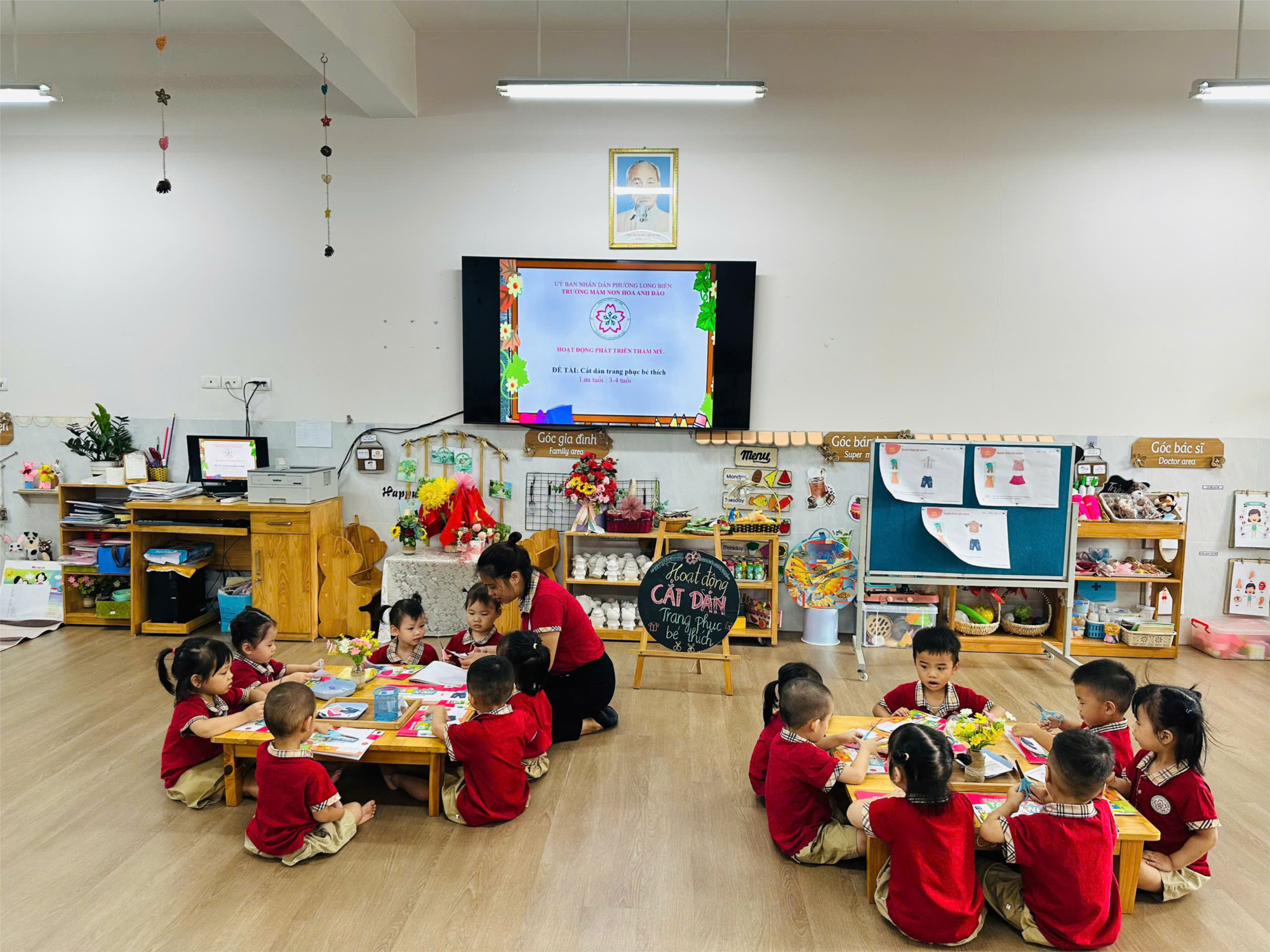 Thông qua hoạt động này, trẻ không chỉ được rèn luyện kỹ năng cắt – dán khéo léo, phát triển khả năng quan sát, tưởng tượng và thẩm mỹ mà còn học cách biết trân trọng, giữ gìn trang phục sạch sẽ, gọn gàng.