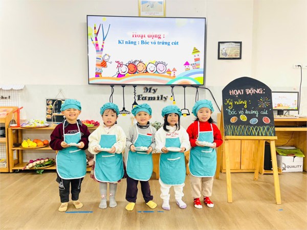 Tập ảnh : Hoạt động trải nghiệm " Bóc trứng chim cút" của các bé lớp C4.