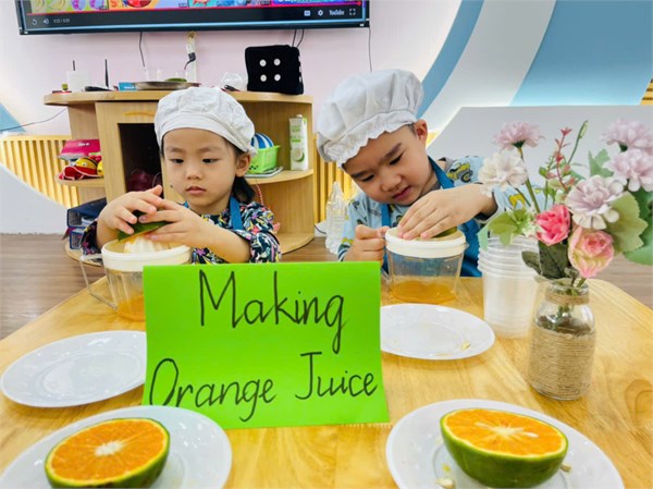 Tập ảnh : Hoạt động trải nghiệm vắt nước cam của các bé lớp B1